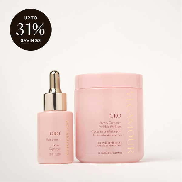 Includes: Full Size GRO Hair Serum, Biotin Gummies for Hair Wellness®, Revitalizing Shampoo & Conditioner + Eye Mask